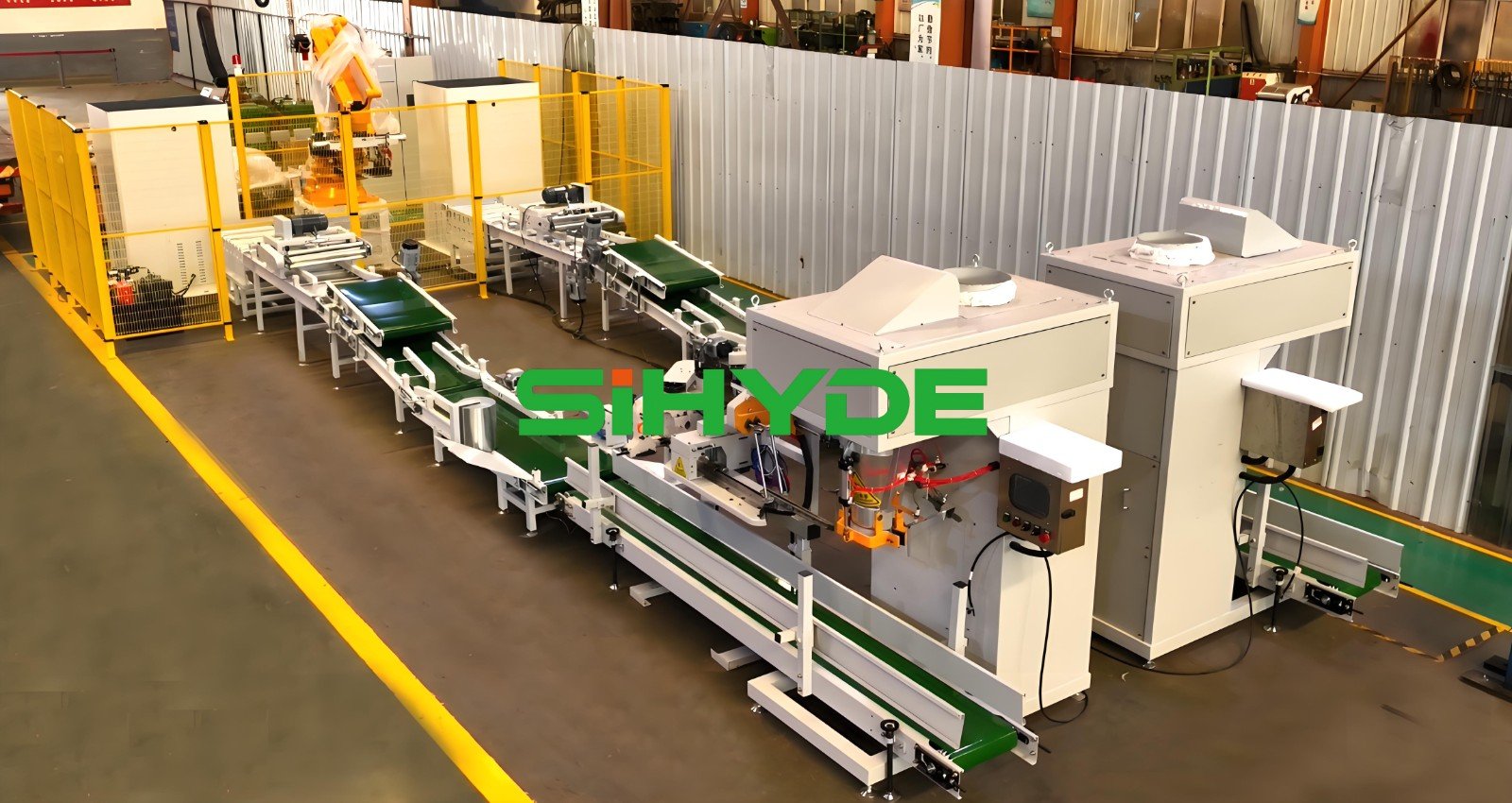 中海德機器人包裝碼垛系統(tǒng),是一套集輸送、整形、壓包、碼垛于一體的智能裝備組合,專為解決25KG-50KG袋裝物料的“最后一公里”包裝難題。系統(tǒng)核心組件包括: